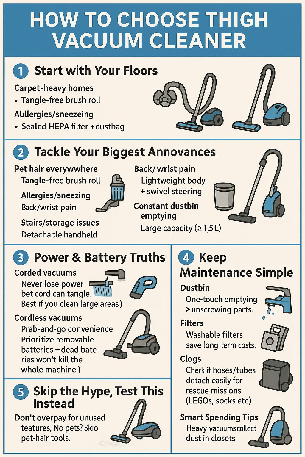 Hier finden Sie eine einfache Anleitung zur Auswahl des richtigen Produkts Staubsauger für Ihr Zuhause, in der Alltagssprache: